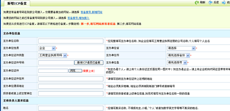 若果您从来没有申请过网站备案,请选择“新申请备案”,选择之后进入后如下图: